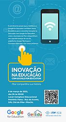 A cidade do Pilar será palco, na próxima terça-feira (08), de mais um encontro cujo objetivo é promover a inovação no processo de aprendizagem de crianças, jovens e adultos. É que o Google for Education realiza, a partir das 9h, no Complexo Professor Petrônio Viana, na Chã do Pilar, o evento “Inovação na Educação com Google for Education – Pilar compartilha sua história”.
