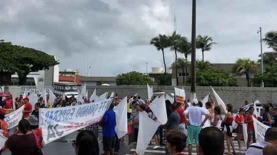 Moradores do Pinheiro, Mutange e Bebedouro se concentraram em frente à Braskem, no Pontal da Barra, na manhã desde domingo (9), para pedir à Justiça o bloqueio de R$ 6,7 bilhões da ação movida pelo Ministério Público e a Defensoria Pública.