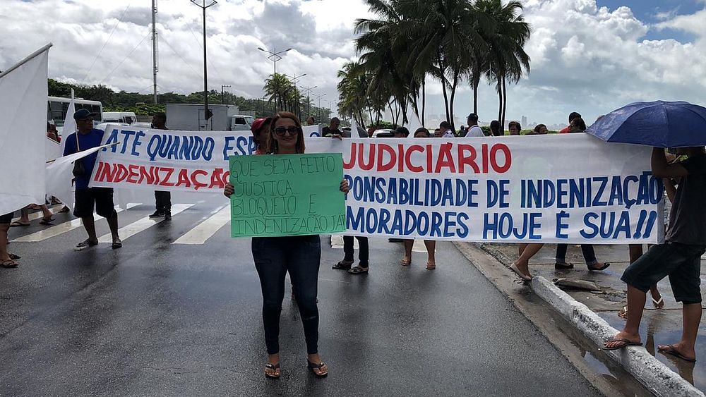As famílias que participaram da manifestação levaram bandeiras, faixas e cartazes, com frases como "A dor é silenciosa, nosso grito não", "Bloqueio já! 6 bi" e "Judiciário, a responsabilidade de indenização dos moradores hoje é sua".