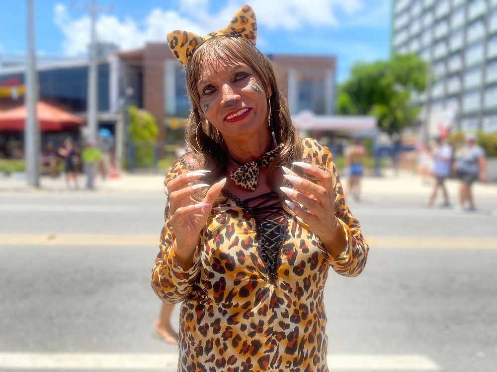 A Maria da Silva França se inspirou na defesa dos animais para escolher sua fantasia. "Para mim, Carnaval é vida, eu amo! Essa fantasia é a onça perdida na cidade. Eu estou fazendo um protesto a favor dos animais, porque eles estão saindo do lugar deles para vir para as cidades. Não tem mais lugar para eles nas florestas. Eu amo os animais e amo a natureza",afirmou. Veja mais imagens de fantasia aqui.