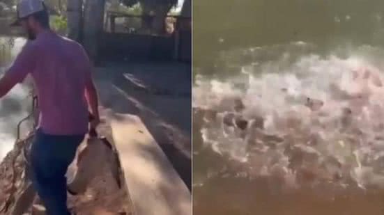 "Foi uma surpresa pra nós, tínhamos feito um abatate e resolvemos jogar a cabeça do boi, mas surpreendemos com tanta piranha e jacaré. Muito antes a gente tomava banho nesse rio, agora não mais", comentou o agrônomo.