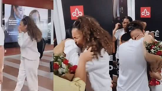 Em vídeo compartilhado nas redes sociais, a equipe de mídias da assistente social mostrou o momento do reencontro de Pitel com a família. A assistente social foi esperada no saguão do Aeroporto Zumbi dos Palmares e foi acolhida com muito choro, de emoção e alegria, com muito abraço e com um buquê de flores.