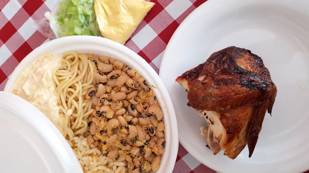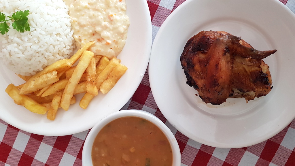 O galeto tem nas versões desossado, gratinado e tradicional. O tempero da ave é bem regional e leva vinagre, salsa, coentro e alho. Para acompanhar, arroz, feijão tropeiro ou caseiro (muito bom), além do macarrão e da clássica maionese. O preço é a partir de R$ 13,00.