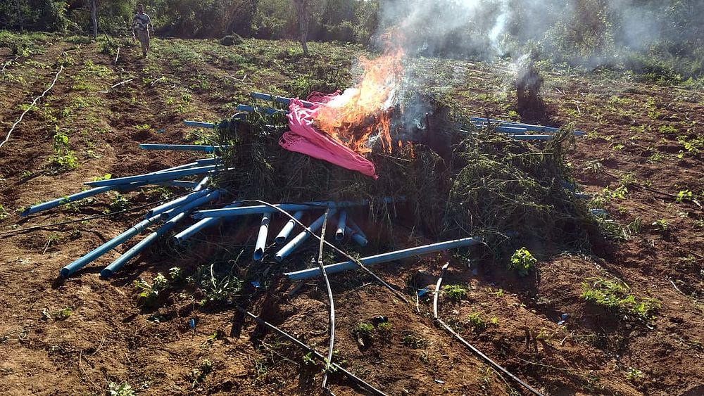 Os militares faziam rondas na região, quando foram informados sobre o plantio, no povoado de Riacho d'Água. 50 mil pés do entorpecente foram localizados.