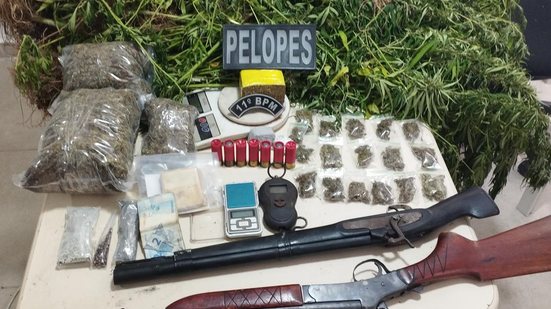 Durante a varredura no local, diversos pés de maconha foram apreendidos, além de entorpecente embalado pronto para venda, armas de fogo, balanças de precisão e uma quantia em dinheiro trocado.