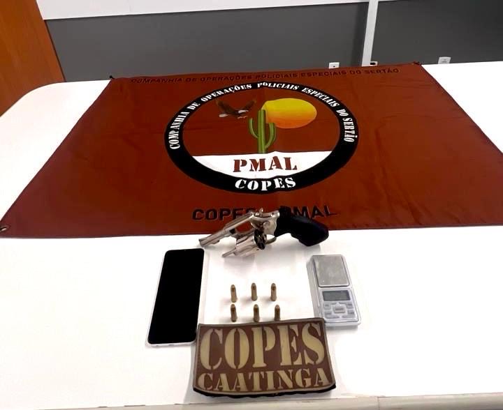 Em Santana do Ipanema, um homem foi detido com um revólver e munições, enquanto em Arapiraca, outro suspeito foi encontrado com crack, maconha e dinheiro, evidenciando a persistência do tráfico na região.