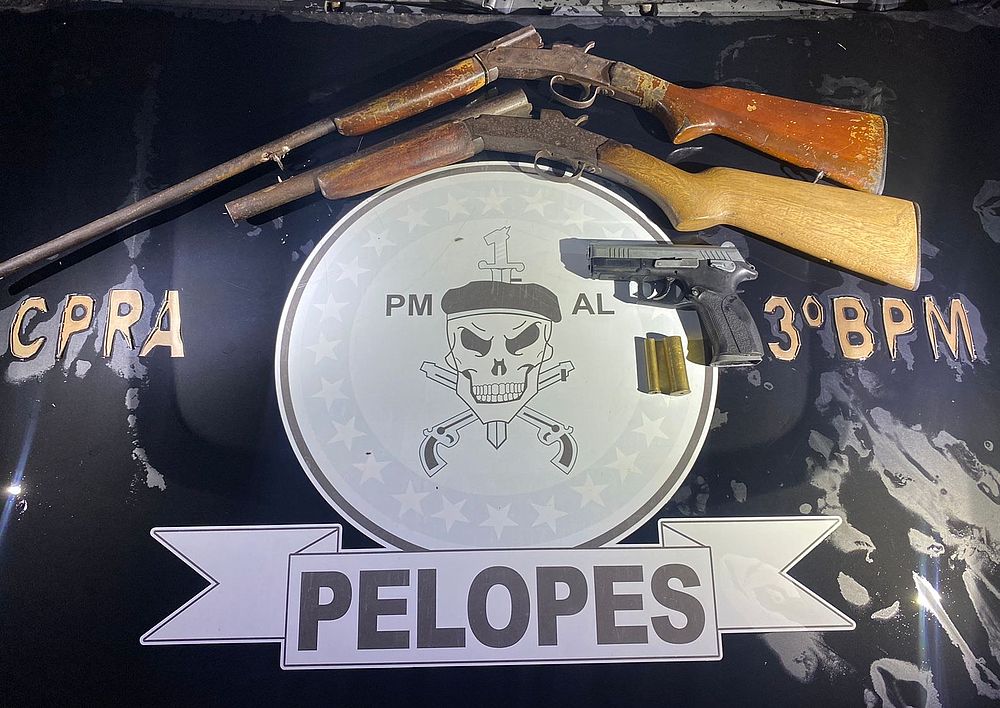 Os PMs realizaram uma busca domiciliar após o flagrante e encontraram as duas espingardas e o simulacro de pistola. As armas e o suspeito, um homem de 27 anos, foram levados para a Central de Polícia Civil, em Arapiraca.