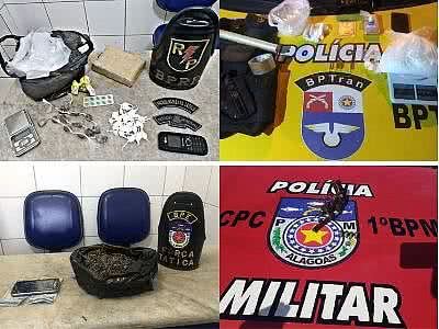 Outro caso de tráfico de entorpecentes foi registrado pela Força Tática do Batalhão de Polícia de Trânsito (Bptran) à tarde. Durante patrulhamento de rotina na Rua Dois, no Benedito Bentes, os policiais avistaram um indivíduo em atitude suspeita. Ele foi abordado em frente à sua residência. Durante a busca pessoal, o suspeito informou que era usuário de drogas. Quando questionado se havia algum entorpecente na casa, ele confessou que tinha uma pequena quantidade de cocaína para consumo. Diante da situação, e com autorização dele, os agentes entraram no imóvel para busca domiciliar. No quarto de Neto, foi encontrado uma pequena quantidade de cocaína, porém dentro de uma gaveta havia cerca de 500 g de cocaína, que ele confessou ser sua. Posteriormente, foram encontradas quatro munições de calibre 38, além de 40 gramas de maconha, cinco comprimidos de Rohypnol, sacos para embalar droga, duas balanças de precisão, capa para coletes balísticos e um celular. Diante do fato, Alcides Rodrigues dos Santos Neto, de 24 anos de idade, foi encaminhado à Central de Flagrantes 01.