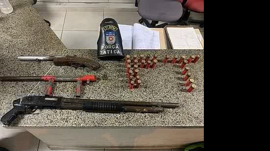 A polícia recolheu as três espingardas de calibre 12, assim como o saco plástico com 23 munições de calibre 12 e cinco de calibre 38.