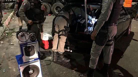 Policiais fizeram abordagens a supeitos e recolheram o equipamento de som de um veículo que estava causando aglomeração e perturbando os vizinhos.