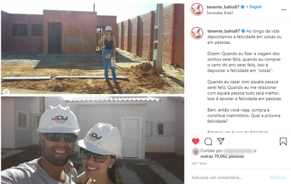 Ao G1, o tenente relatou que era o sonho da esposa morar no interior. Antes mesmo de saber que a esposa estava grávida, o casal decidiu construir um casa em Sorocaba em 2016.