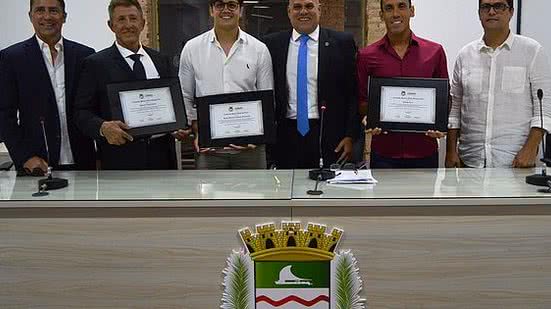 O primeiro agraciado com a comenda Cleto Marques Luz foi o atleta de triátlon Fellipe Lira, que destacou a emoção em receber a honraria. “Quando fui convidado pra receber essa homenagem, alguns colegas do esporte souberam e, assim como eu, se sentiram homenageados. É um esporte que vem crescendo a cada ano, mas eu não imaginava chegar até aqui”, disse, ressaltando a importância do trabalho do vereador Eduardo Canuto como incentivador da modalidade.