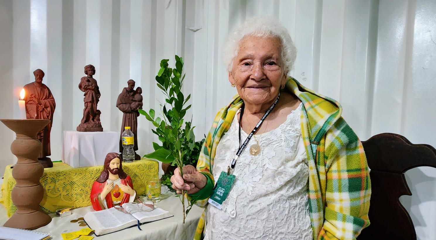 Dona Angelina com reza levando a paz para todos os brincantes dos festejos juninos.