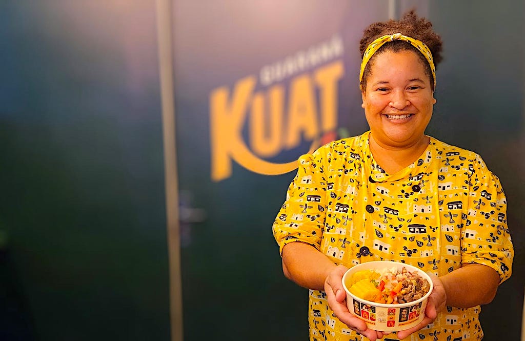 Com 15 anos de cozinha, o apoio da Kuat representou o coroamento ao trabalho da chef Gessi na culinária pernambucana. “Recebi capacitação, e junto com a Kuat criamos o poke com ingredientes nordestinos, e brasileiros, também, como o arroz carreteiro e o vatapá paraense. Esta presente no espaço gastronômico no Pátio de Eventos é um vitrine da minha culinária”, contou a chef, que foi inspirada nos temperos da vó Maci e mãe Geni.
