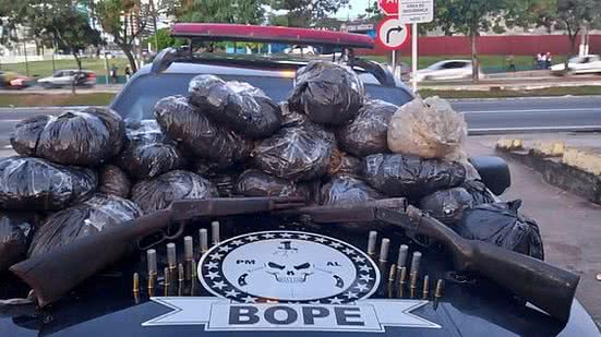 Segundo informações do Batalhão de Operações Especiais da Polícia Militar de Alagoas (Bope), os dois suspeitos e o material ilícito foram encontrados após os policiais receberem uma denúncia anônima. Policiais penais também participaram da ação.