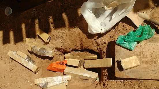 A droga foi encontrada dividida em tabletes, enterrada no quintal da casa de Janderson. Além do material ilícito, uma balança de precisão também foi apreendida.