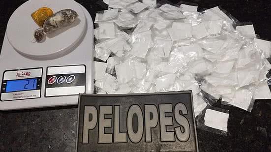 Rapidamente, o menor tentou fugir e deixou uma bolsa preta para trás. Ele foi capturado e conduzido à delegacia na presença da genitora. Após revista na bolsa, a polícia encontrou 227 papelotes de cocaína, a pequena quantidade de maconha e uma balança de precisão.