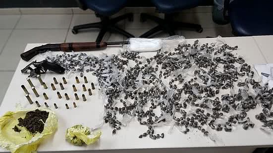Com o grupo, foram apreendidos 1.130 bombinhas de maconha, mais 130 gramas da droga, uma espingarda – calibre 36, um revólver – calibre 38, 16 munições de calibre 44, uma munição de 38, 4 munições de 32, e cinco cartuchos de calibre 36.
