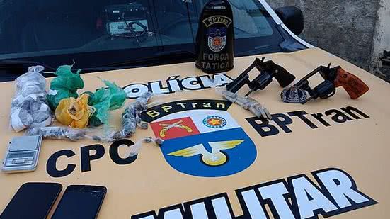 Os militares foram em busca da arma e da mochila jogada pelo suspeito e encontraram mais um revólver dentro da bolsa, além de drogas prontas para comercialização.