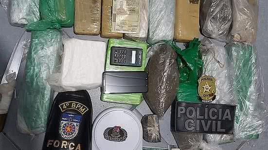Segundo informações do 4º Batalhão da PM, 10 kg de maconha, 1,74 kg de cocaína e uma motocicleta Honda/CG 125 Fan, de cor vermelha e de placa OHB-2857/AL, foram apreendidos. A ação contou com o apoio de duas guarnições da Força Tática e do Serviço de Inteligência da Unidade.