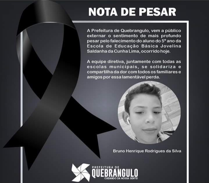 Bruno Henrique Rodrigues da Silva, de 10 anos, foi encontrado por parentes na manhã de ontem na zona rural de Quebrangulo. Policiais militares do 10º Batalhão se deslocaram para a residência da família após recebimento de denúncia de um suposto suicídio.