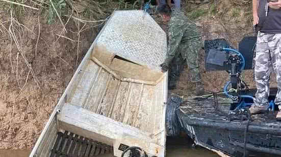 Segundo a Polícia Civil, a embarcação foi encontrada após cinco horas de buscas, a uma distância de 30m da margem do rio. A lancha estava com seis sacos de areia para imperir a flutuação. O local foi indicado por Jeferson da Silva Lima, o “Pelado da Dinha”, preso no sábado (18/6). Ele é um dos oito suspeitos de ter assassinado Bruno e Dom.