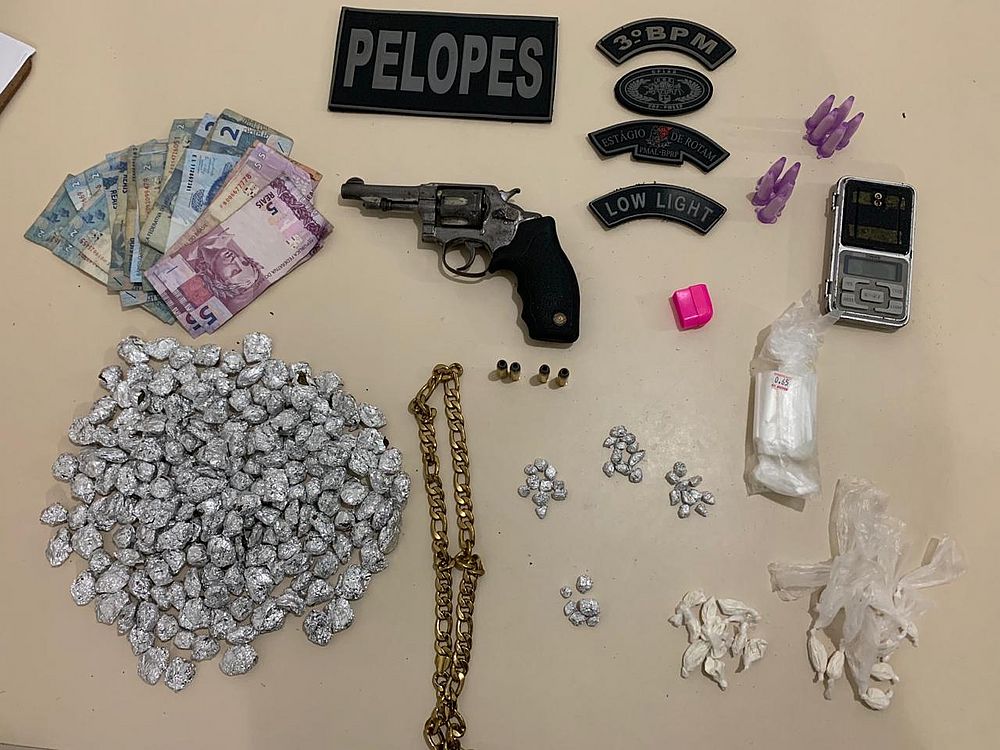 Na casa os policiais do Pelotão de Operações Especiais (Pelopes) também encontraram pedras de crack, balança de precisão, um revólver e certa quantia em dinheiro.