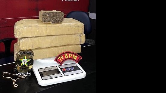 De imediato policiais civis e militares do CISP se dirigiram ao local e não encontraram o suspeito, mas resolveram fazer buscas na área, encontrando uma saliência na areia, e após cavar, localizaram o referido balde com uma balança de precisão e aproximadamente 3 kg de maconha prensada.