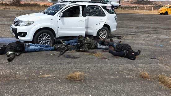 Na abordagem houve intenso confronto entre os assaltantes e os policiais federais, resultando na morte de cinco bandidos e no ferimento de outro, que foi socorrido ao hospital local. Além desses, já foram presos mais quatro integrantes da quadrilha.