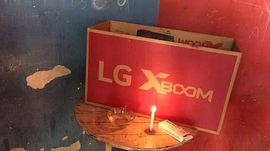 Quando chegaram ao local, a polícia encontrou uma caixa de papelão de uma marca de eletroeletrônicos em cima de uma mesa de madeira.