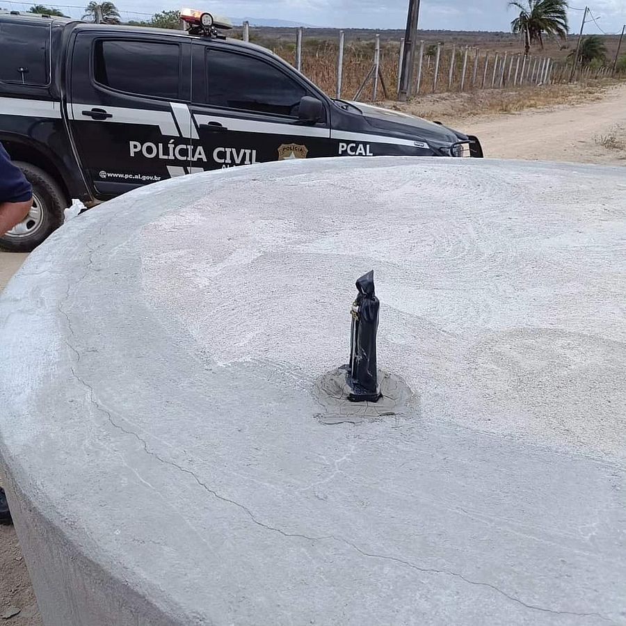 Os moradores da região procuraram a delegacia para denunciar o fato. O chefe de Operações, agente Tiago, informou que enviou uma equipe até o local e constatou que a estátua de gesso chumbada com cimento em cima de uma cisterna de uma residência do povoado. O objeto foi removido.