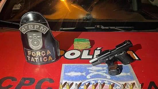 De acordo com os militares, uma guarnição da Força Tarefa realizava patrulhamento pelo bairro quando foi informada por populares sobre a localização de três indivíduos – que dias antes teriam efetuados disparos de arma de fogo em via pública. Os envolvidos estariam reunidos novamente, desta feita na Alameda e que também estariam portando arma de fogo. No local, os militares visualizaram um indivíduo em atitude suspeita na frente de uma residência. Na abordagem e busca pessoal, foi encontrada a arma. Com a devida autorização, foi encontrada a droga após a busca no imóvel. O fato foi conduzido à Central de Flagrantes onde foi lavrado o auto de prisão em flagrante por Tráfico de Drogas qualificado pelo emprego de arma de fogo.