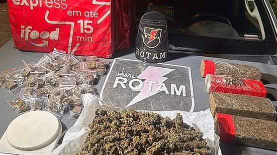 Os militares realizavam patrulhamento nas proximidades de um shopping center, quando se depararam com um indivíduo conduzindo uma motocicleta, praticando direção perigosa e portando uma bag com dizeres de um aplicativo de entrega de alimentos. Ao realizar a abordagem, a equipe encontrou uma certa quantidade de maconha em sua bolsa.
