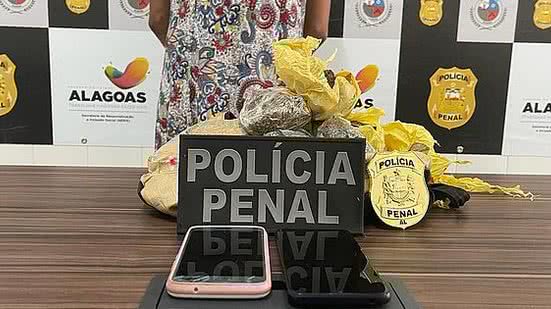 A Polícia Penal prendeu, no final da manhã desta quarta-feira (1º), uma mulher de 41 anos flagrada com 500 gramas de maconha no portão de acesso ao complexo penitenciário de Maceió. A mulher foi detida após denúncia anônima e encaminhada por policiais penais do Grupamento de Escolta, Remoção e Intervenção Tática (Gerit) à Central de Flagrantes, no bairro do Farol, onde deve ser autuada por tráfico de drogas.