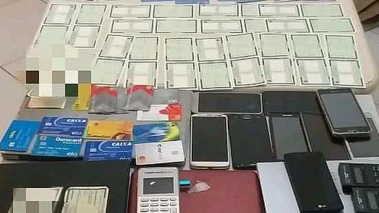 Com os presos foram aprendidos notbooks, celulares, cartões de créditos, documentos falsificados, cédulas de identidade em branco, vários papéis com dados de pessoas, vários chips de celular e dois veículos.