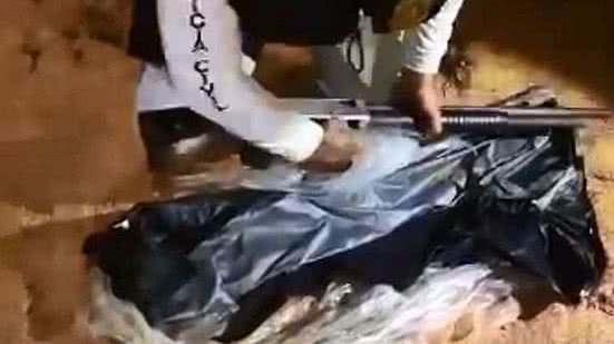 Um vídeo gravado pela polícia mostra o momento em que a polícia desenterra coletes a prova de balas, armas e explosivos; assista: