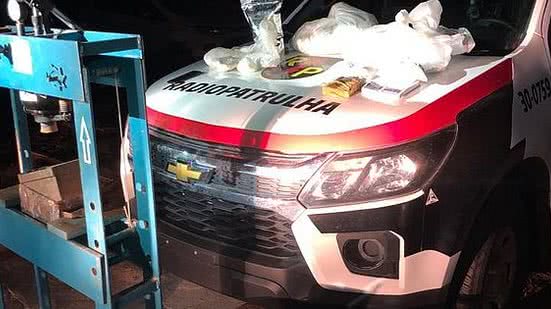 Além dos 16 quilos do entorpecente, os policiais apreenderam uma prensa mecânica, três balanças digitais, um aparelho celular e embalagens plásticas para comercialização.