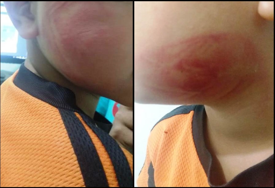 | Marcas de chineladas ficaram no rosto de menino / Cortesia ao TNH1 |