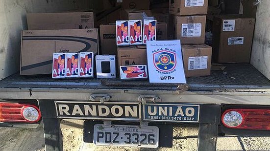 Dentro da veículo, foram recuperados quatro impressoras, 61 papéis para copiar fotos, 87 HD’s externos, 22 notebooks, 70 celulares, 20 unidades de pen drives de oito gigas, 28 cartuchos de impressora, 20 unidades de fita adesiva e 156 unidades de cartões de memória. O material e o caminhão foram entregues ao Depatri, da Polícia Civil, para que fossem devolvidos ao proprietário.