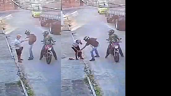 Vídeo mostra assalto e disparo - Imagens gravadas por uma câmera de segurança mostram o momento do crime. No vídeo, dá para perceber o momento em que José Amaro, que segura uma bolsa, olha para trás e observa os dois suspeitos na moto. Ele atravessa a rua, mas é rendido pela dupla armada.