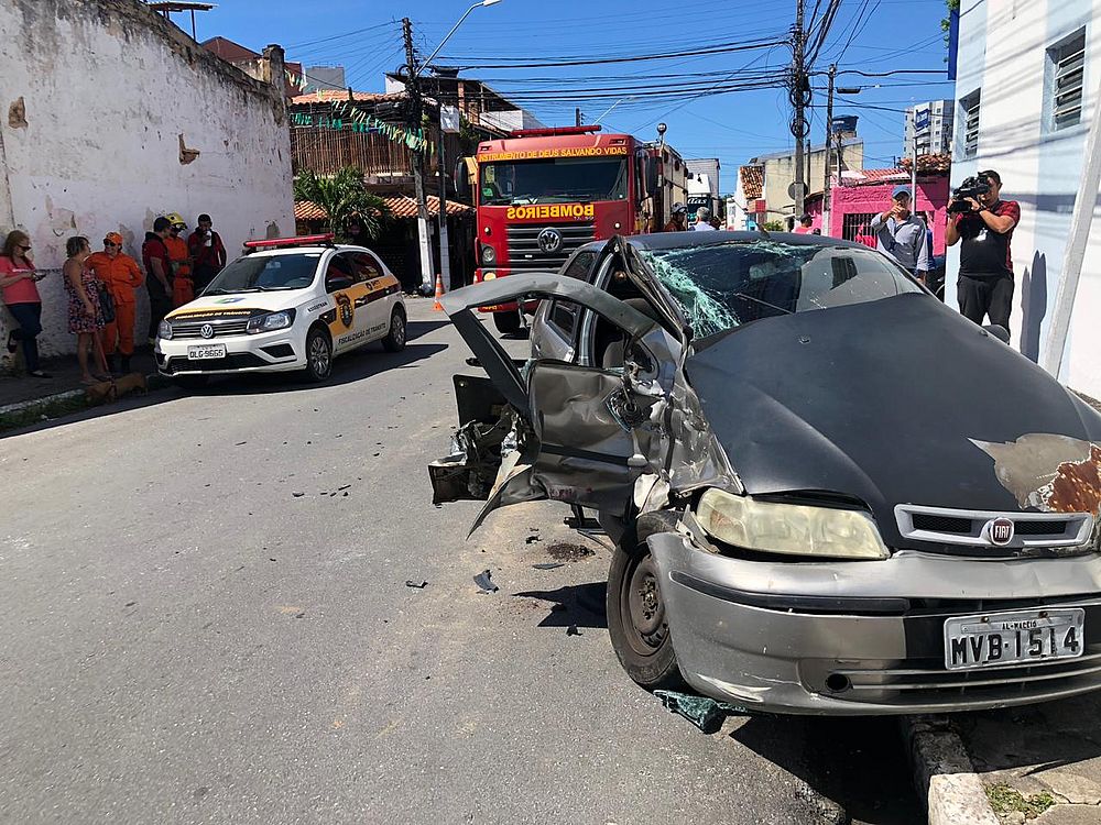 Dois policiais militares ficaram feridos em um acidente com uma viatura do Corpo de Bombeiros, em um cruzamento no bairro de Pajuçara, em Maceió, na manhã desta segunda (29).