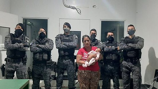 Uma câmera de segurança flagrou o momento em que a mãe corre desesperada e entrega a neném aos policiais, que de imediato iniciam o procedimento de primeiros socorros. Um militar segura a bebê, entra na viatura e segue com a técnica para desengasgar a recém-nascida, enquanto a mãe dela também embarca no carro.