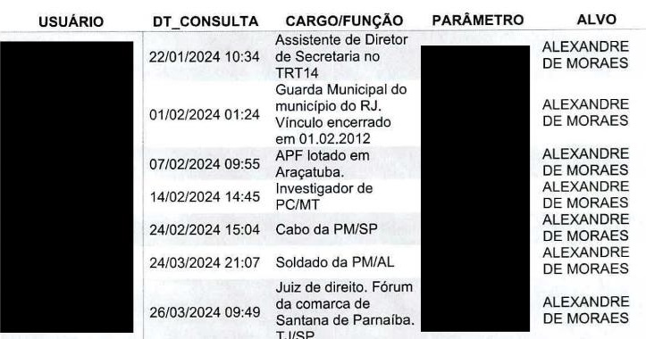 Os dados mostram que o nome e os dados pessoais de Moraes continuam sendo buscados por servidores de diferentes regiões do país, mesmo após o ministro autorizar várias operações para desmantelar o grupo que atuava na chamada "Abin paralela" montando dossiês e monitorando até ministros do Supremo, segundo as investigações.