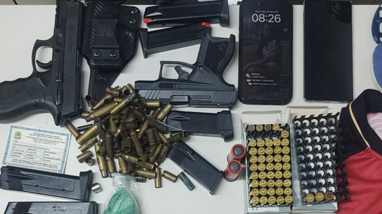 Na residência do suspeito, Welson Wagner dos Santos Mesquita, de 37 anos, lotado na 9ª Companhia Independente (CIPM/Pirajá), a Polícia Civil encontrou armas de fogo, diversas munições, uma motocicleta e outros itens que apontam ligação com crime.
