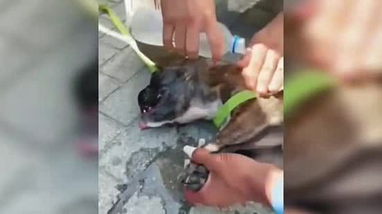 Vídeo divulgado em rede social mostra o momento em que os policiais quebram o vidro do carro com auxílio de uma barra de ferro e encontram o pet no chão, extremamente ofegante e quase sem reação. Kyra, da raça buldogue francês, recebeu água –também jogada sobre seu corpinho para amenizar a temperatura- e foi encaminhada a uma clínica.