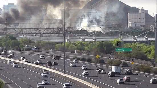 The incident occurred around 6 a.m. local time on the south side of the lake near #MillAvenue and it wasn't immediately clear what caused the train to derail, or if anyone is injured. #trainfire #bridgefire #arizonabridge #Arizona #TempeTownLakebridge pic.twitter.com/vzuXM6WObG