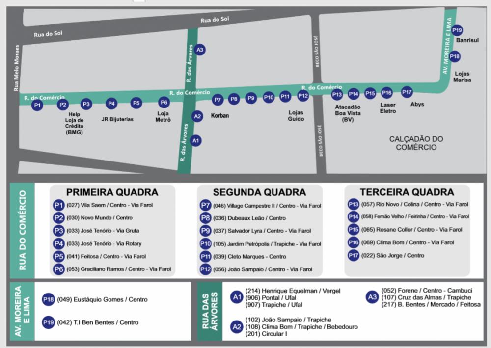 A partir desta terça-feira (11), os pontos de paradas de ônibus localizados ao longo da ruas do Comércio e das Árvores, e da Avenida Moreira Lima, no Centro de Maceió, serão reordenados. A intervenção tem o intuito de incentivar a formação das filas, além de proporcionar maior conforto aos usuários durante o embarque nos coletivos do Sistema Integrado de Mobilidade de Maceió (SIMM).