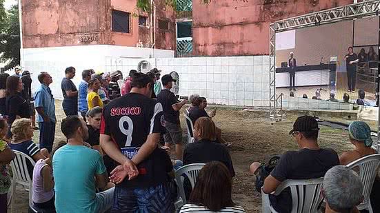 O telão de LED de 6x4 foi instalado na Praça Menino Jesus de Praga, para os moradores que não puderam ir ao prédio da Justiça Federal, onde ocorrerá a apresentação do relatório.