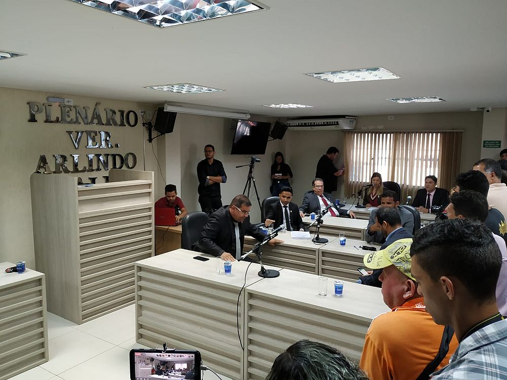 O presidente da Câmara Municipal de Rio Largo, vereador Tales Diniz, preside a sessão. Gilberto não compareceu. O advogado Henrique Vasconcelos, que fez a defesa do prefeito Gilberto Gonçalves, disse haver fraude no documento que embasa as denúncias da Comissão Denunciante. Ele também argumentou que o caso não é apenas administrativo, mas que há interesse político na cassação do mandato do prefeito.
