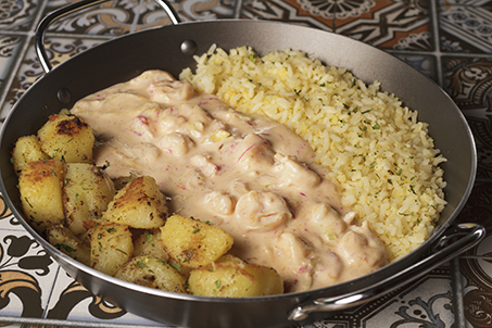 BICHO DO MAR: Camarões salteados no azeite virgem com alho poró, queijo do reino e molho branco, ladeados por arroz de açafrão e batatas sautée. Av. Menino Marcelo, 14-R4- Barro Duro/ Telefone: 82 3328-5007